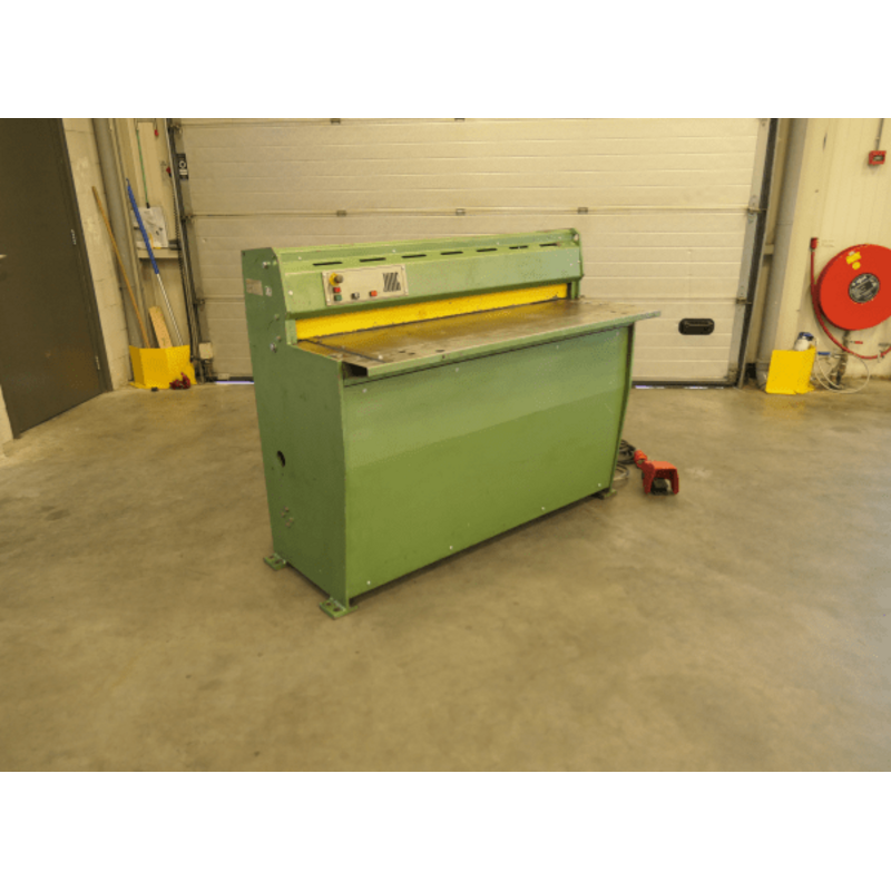 Die M1456 JÖRG Tafelschere 4022 Gebraucht ist eine motorisch angetriebene Schere. Die Schere hat eine Arbeitsbreite von 1250 mm und eine Kapazität von 2 mm.