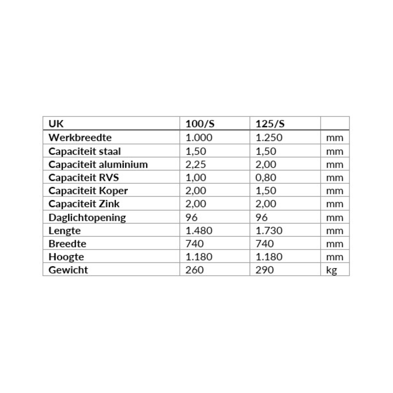 Der SCHECHTL Segment Biegemaschine UK 100 ist ein hochwertiger und präziser Universal-Biegemaschine mit Schnellspannsystem, erhältlich in der Standardversion UK, der verstärkten Version UKV und der Version UKF mit erhöhten Fingern von 160 mm statt 100 mm. Segmente in Ober-, Unter- und Biegebalken für flexible Setzarten wie Schalen-, Halb-, Teil- und Gegensetzen. Schechtl-UKF-Biegemaschinen werden mit einem universellen Festkoffer an der Rückseite des Maschinengestells geliefert, der auch als kleiner Arbeitstisch fungiert.