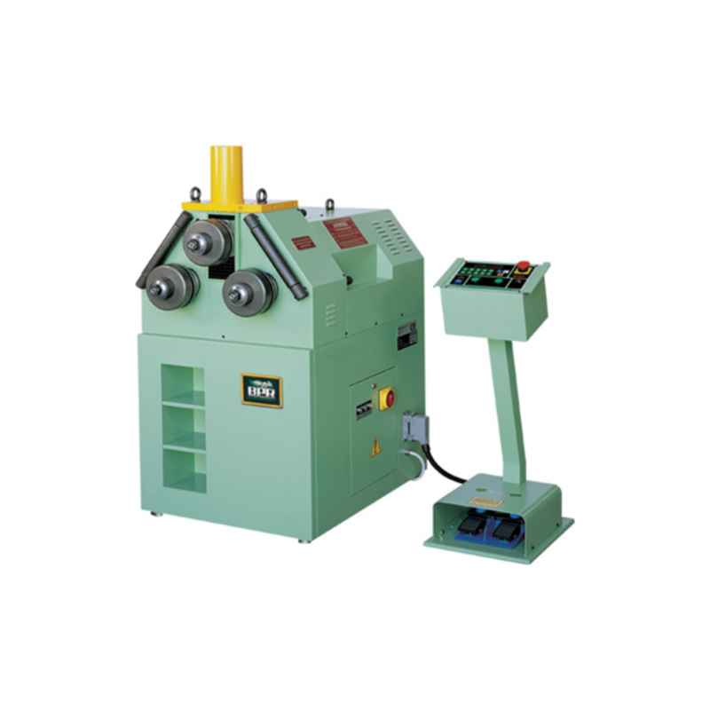 The BPR Profile Roll Bending Machine CP 40H is a profile roller with a shaft diameter of 40 mm. The top roller is hydraulically adjustable. The machine has an EPN8 control with digital indication of the top roller pore and programming possible of 40 stop positions. The bottom 2 rollers are knurled and driven. The frame is steel and heavily constructed. The shafts are hardened and ground from high-quality machine steel. Both horizontal and vertical work can be done on this machine.