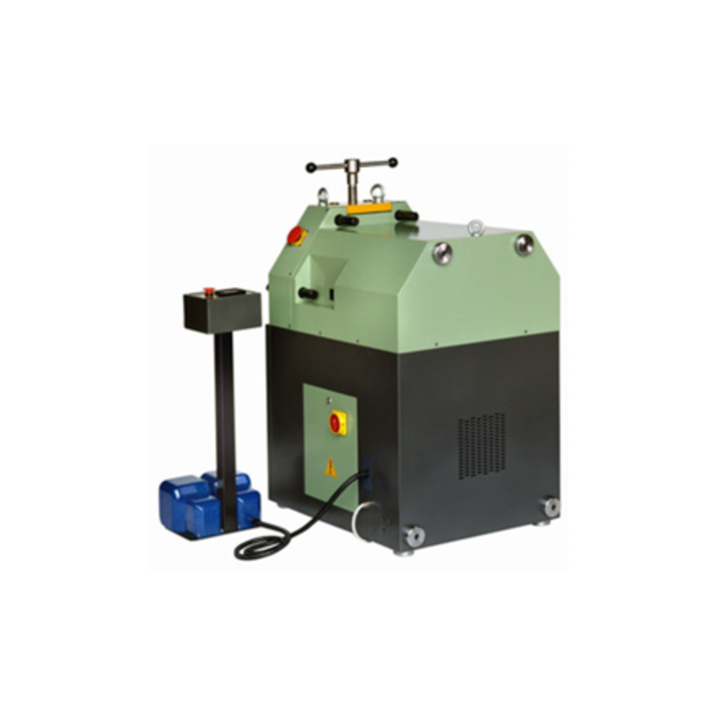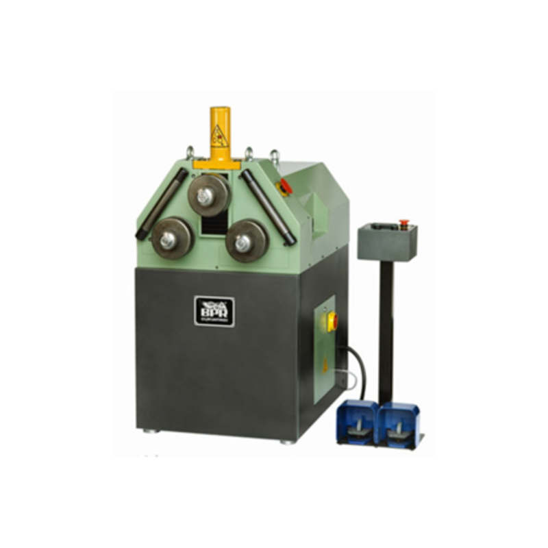 The BPR Profile Roll Bending Machine Z 302 is manufactured in Italy and suitable for the professional user. The top roller is manually adjustable and has a digital indication of the top roller position. The bottom 2 rollers are driven and are knurled. The shafts are hardened and ground. The maximum gap between the rollers is 94 mm. The steel frame is heavily constructed.