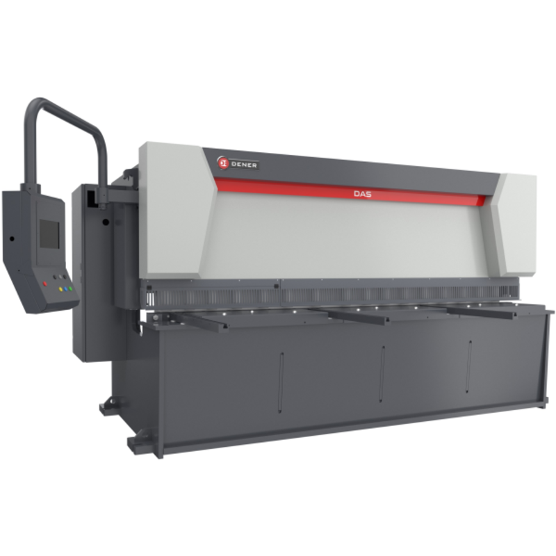 The DENER Guillotine Shear DAS-Serie series are reliable hydraulic CNC guillotine shears. Due to the straight-line movement of the blade beam, this machine is ideal for cutting thin sheet metal. The guillotine shears have a capacity of 6 to 10 mm with a working width of 3 or 4 metres. The shears have a strong, welded construction suitable for long-term use.
