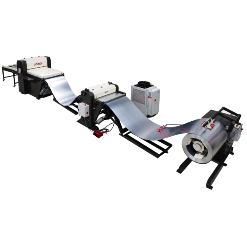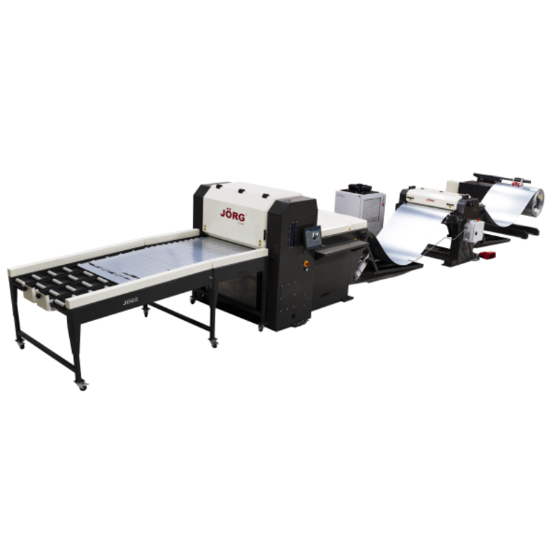 The JÖRG-Laser cuts directly from the coil. This increases the material used efficiency, and the sheet supply to be efficient. In addition, the length of the products to be cut is not limited by the machine. By setting up multiple decoilers for the machine, with an automatic selector, it is possible to quickly switch materials.