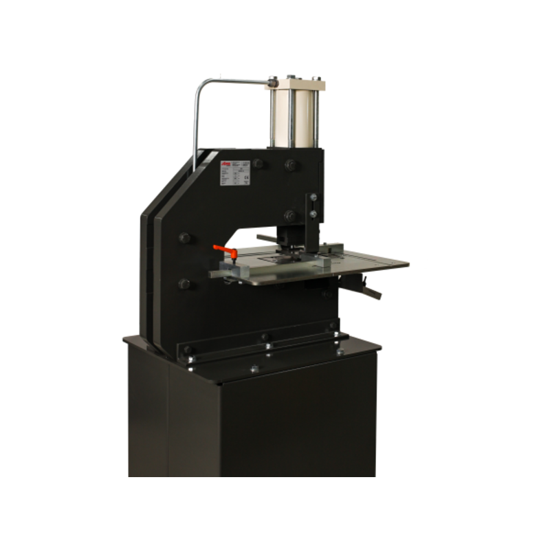 The punches and dies are easy to change and the stripper ensures the sheet doesn't get stuck. The stops on the wide work table are easy to set and read on a mm scale. A standard set of punches is included. For less intensive use a manual version is available.