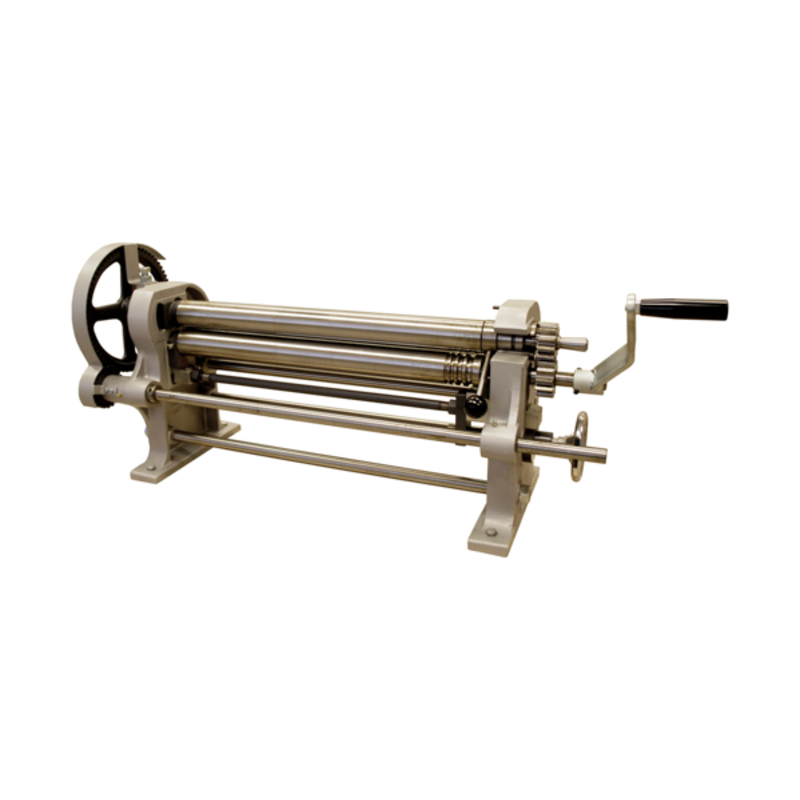The clamping roll is adjusted with a handwheel. Both the clamping and bending rolls have four different grooves on the right side of the machine for wire bending.
