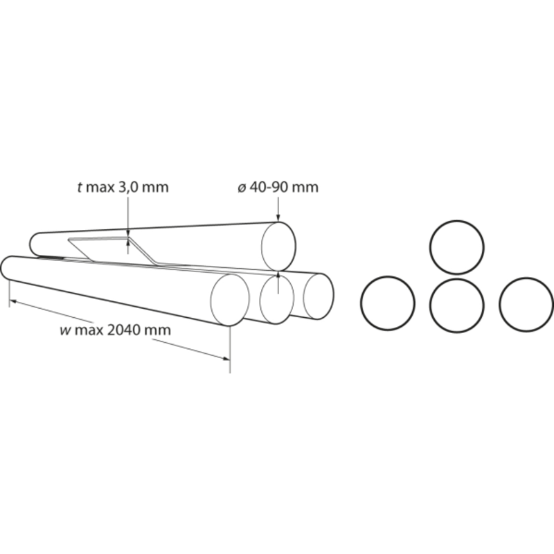 The NOSSTEC Bending Roll Machine 8344 is designed for the production of complex shapes. The machine features three of its four rolls mounted in a pivoting frame – these are the lower roll, bending roll, and pre-bending roll. The top roll is located above the lower roll, resulting in a roller setup with symmetrically placed bending rolls. All four rolls are driven, preventing sheet damage due to slipping. The pivoting frame automatically adjusts to the required rolling position. Its vertical movement is powered by two eccentrics. Thanks to the four-roll system, there’s no need to reinsert the sheet between pre-bending and final rolling. This ensures high repeat accuracy and fast production.