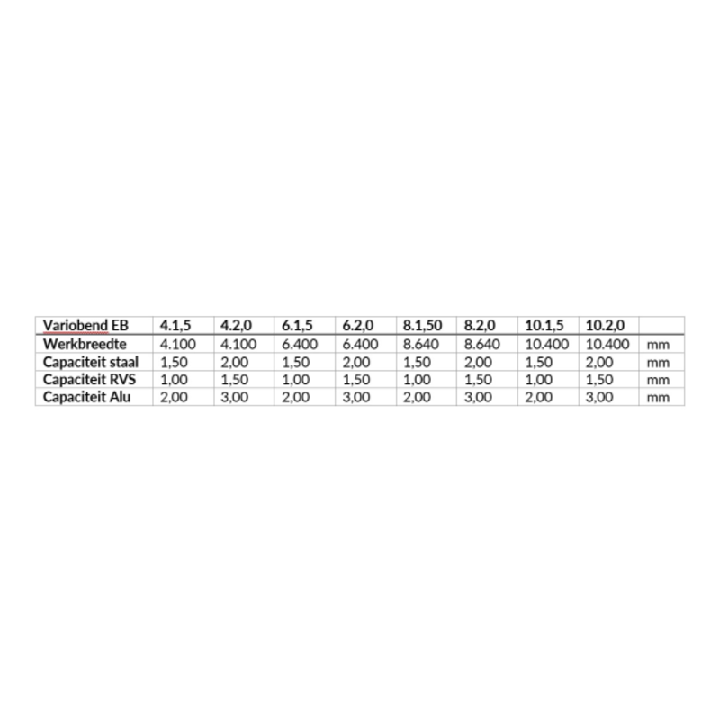 The VARIOBEND Long-length Bending Machine EB is known for its precise versatility and good value for money. These long-setting benches have high power and an inclined bending beam. This creates a lot of freedom for bending complex profiles. Tapered bending is also possible on this long-setting bench.