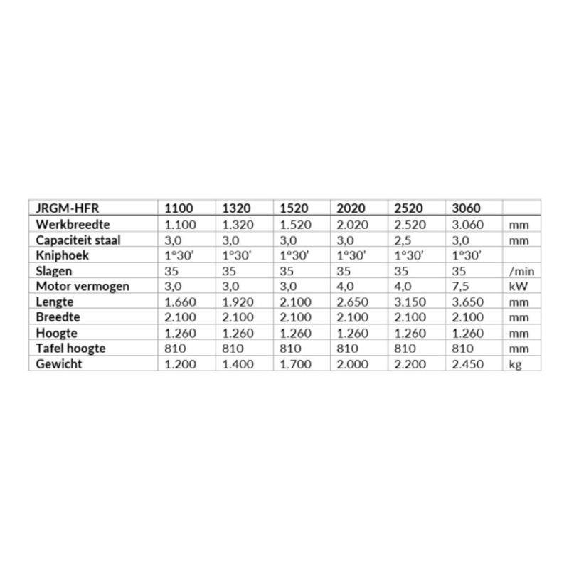 De JÖRG Guillotine schaar JRGM-HFR 3060 is een mechanisch, dubbelzijdig aangedreven plaatschaar. Deze schaar heeft een eenvoudige constructie, waardoor deze geschikt is voor lichter knipwerk. Deze schaar heeft een vaste terugvoerplaat, waardoor korte plaatjes naar voren vallen. Door de innovatieve plaathooghouder kan de geknipte plaat zowel naar voren als naar achteren worden afgevoerd, het zogenaamde Return to Sender/Rear principe. De vaste terugvoerplaat zit standaard op de machine, de plaathooghouder is een optie.