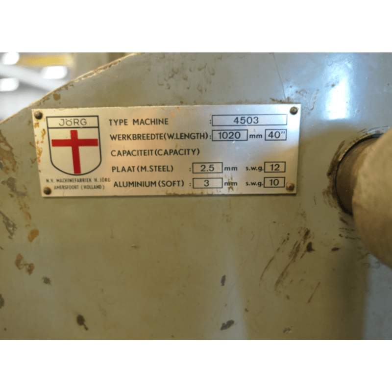 De M1399 JÖRG Plaatwals 4503 Gebruikt is een asymmetrische 3 rollen wals. Voor het rondbuigen van platen en het maken van buizen.