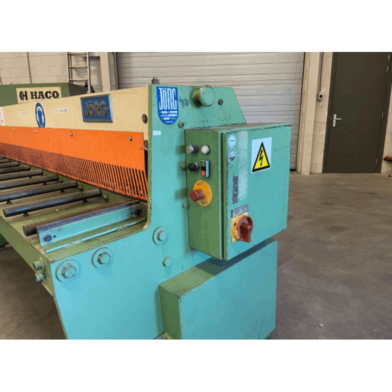 De M1460 JÖRG Guillotineschaar 4054 Gebruikt heeft een werkbreedte van 2050 mm en is geschikt voor het knippen van staal, aluminium, RVS, koper, zink etc.
