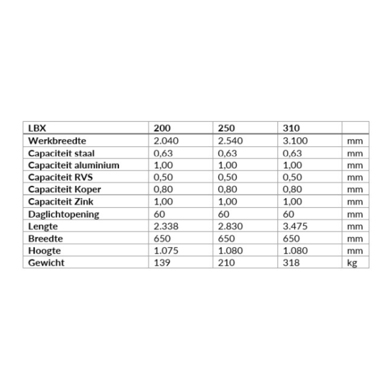 - Handmatige bombering van de buigbalk, voor een juiste bewerking over de volle lengte